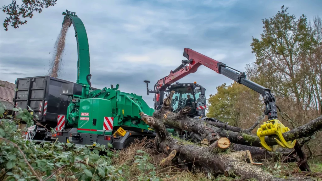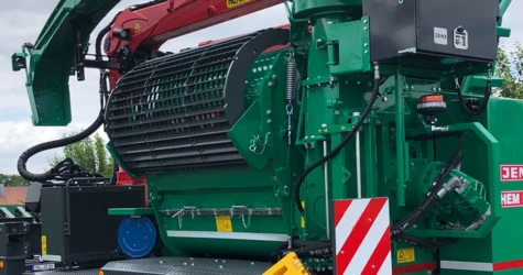 Tocătoarele JENZ sunt echipate standard cu macarale Palfinger Epsilon, deoarece acestea sunt robuste și ușor de întreținut. Datorită soluțiilor profesionale, macaralele EPSILON cresc productivitatea tocătorului și permit operatorului să se concentreze complet pe procesul de tocare. Macaraua M70F101 are o rază de acțiune de 10 m pentru a ajunge la materialul aflat la distanță. Despicătorul opțional este utilizat pentru buștenii mai mari, astfel încât niciun material să nu rămână neprocesat.